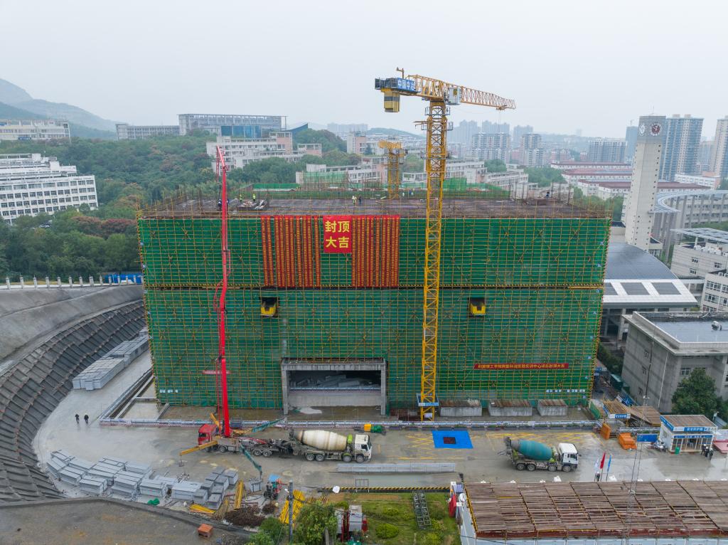 荆楚科创实验实训中心项目位于学校校内,总建筑面积34960.97平方米,主要建设实验实训、创新创业、实验成果展示、产业技术研究院等功能用房。自开工以来,项目管理团队紧紧围绕施工目标任务,周密制定实施计划,统筹协调人、机、材等资源,克服工期紧张、高温多雨及多工序交叉作业等不利因素,精心组织,科学谋划,为项目主体结构封顶打下坚实基础。